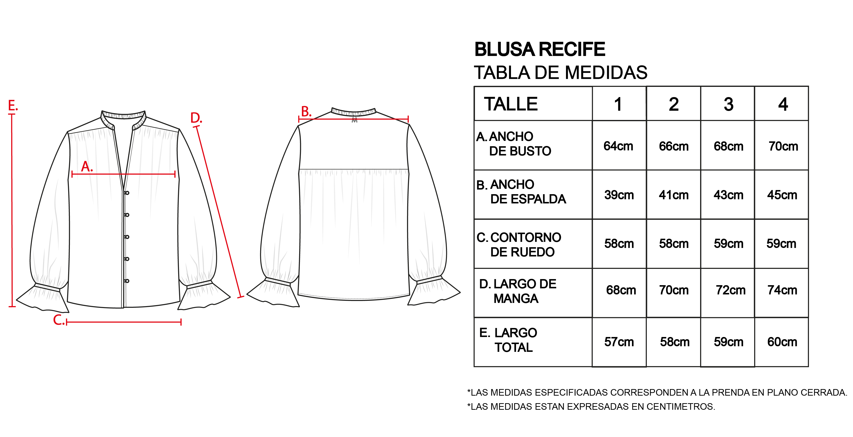 Blusa de corte regular y holgado. Con escote en V con mini tablas en todo el recorrido del cuello. Mangas largas con frunce generado por una terminación elastizada en la bocamanga. El acceso delantero es mediante una cartera simple abotonada con botones a tono. En hombros y espalda posee un canesú con frunce. El largo modular de la prenda se extiende hasta la primera cadera.