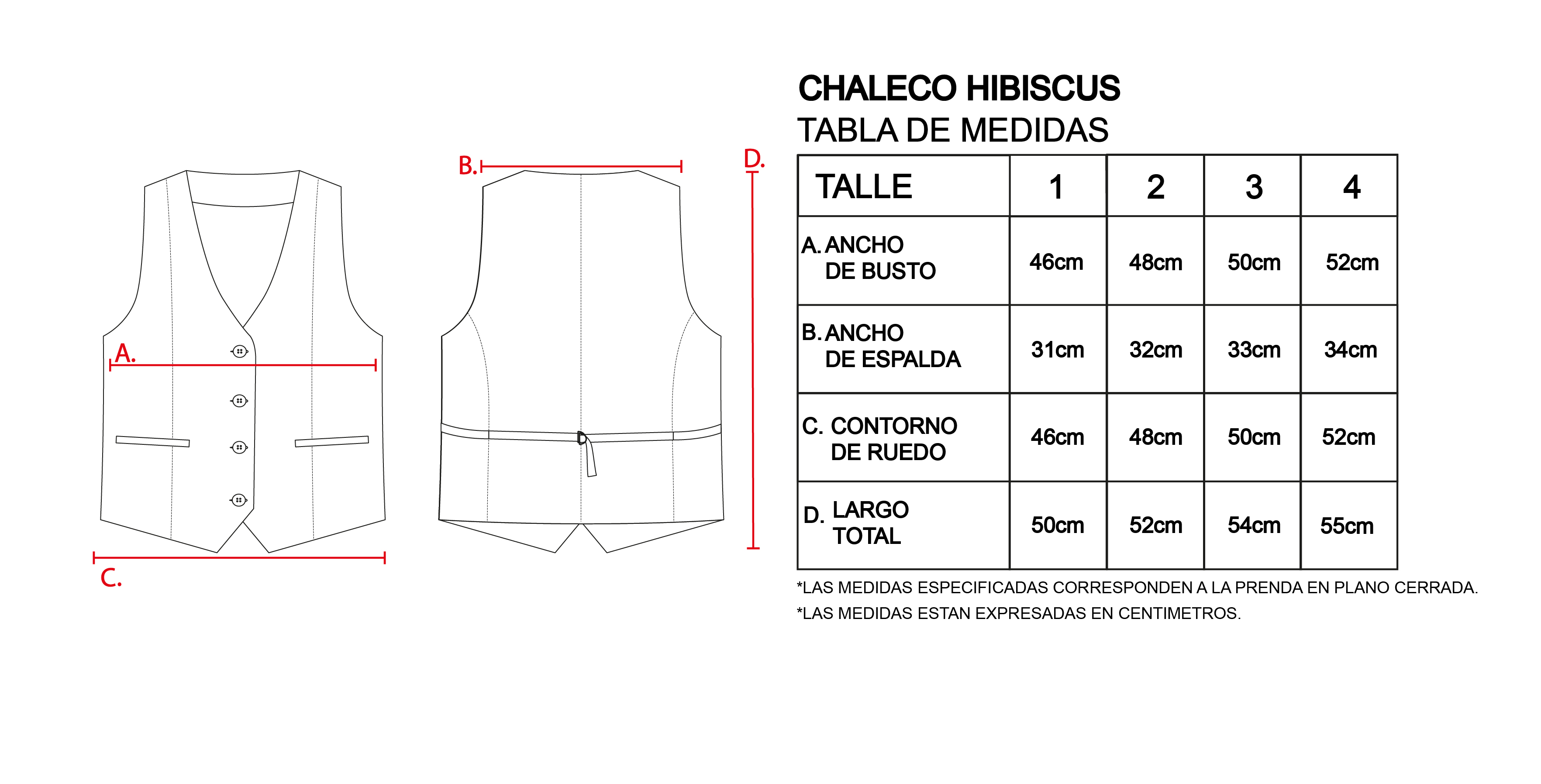 Chaleco sastrero, íntegramente forrado, con recortes de entalle. En el delantero posee bolsillos ojal y su acceso es mediante un cruce simple a cuatro botones joya bombé metálico en color oro. En el centro espalda lleva una martingala regulable por una hebilla de zamak en color oro. El largo modular de la prenda se extiende hasta la primera cadera.