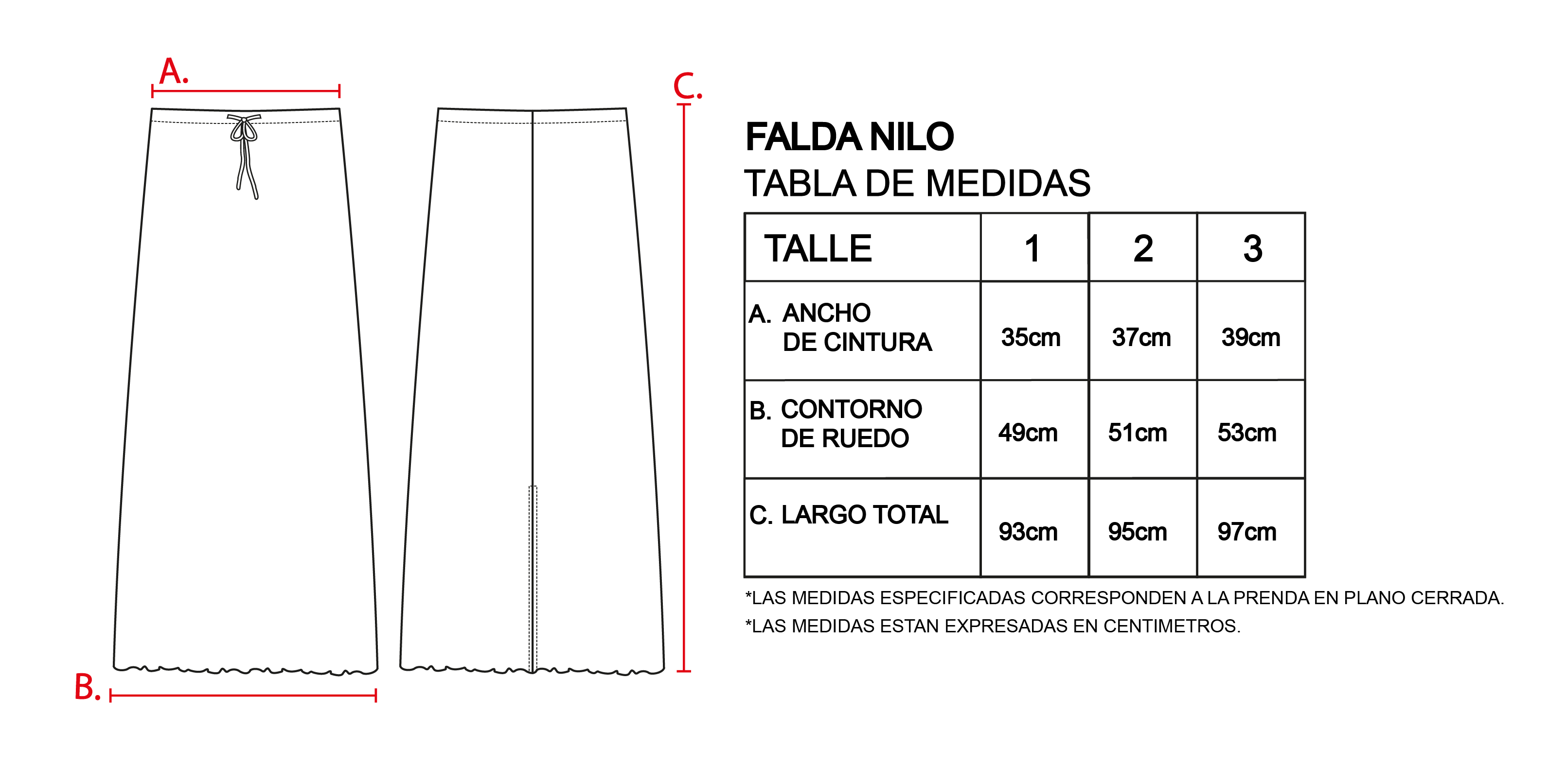 Falda tipo tubo, midi con cintura elástica y cordón de ajuste. Terminación en el bajo en roulotte a tono. El largo modular de la prenda se extiende entre la pantorrilla baja y el tobillo.