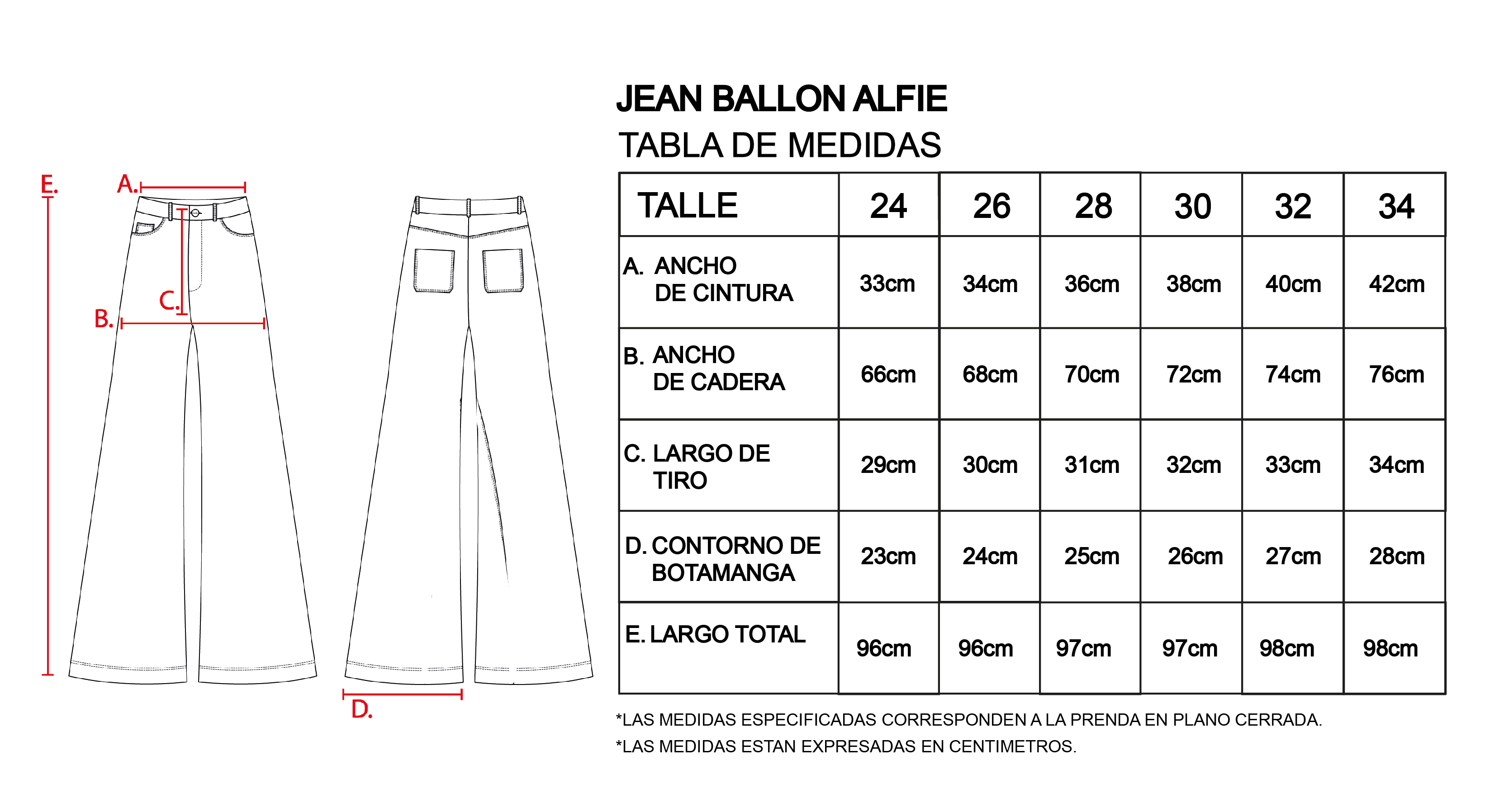 Jean balloon, de tiro medio. Con pretina extendida a dos botones. El textil tiene un proceso de desgaste artesanal. En la espalda lleva bolsillos plaqué. El largo modular de la prenda se extiende por encima del tobillo, con ruedo. Posee badana de PU, remaches y botón personalizados de zamak.