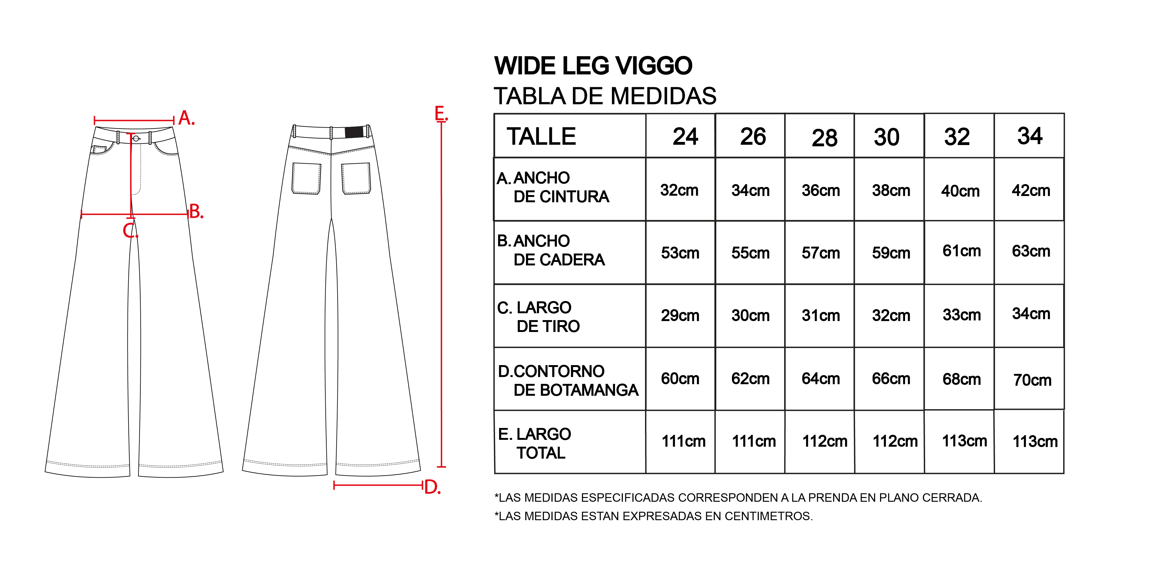 Jean wide leg tiro alto. En la espalda lleva bolsillos plaqué. El largo modular de la prenda se extiende hasta el tobillo, con ruedo simple. Posee badana de PU, remaches y botón personalizados de zamak.