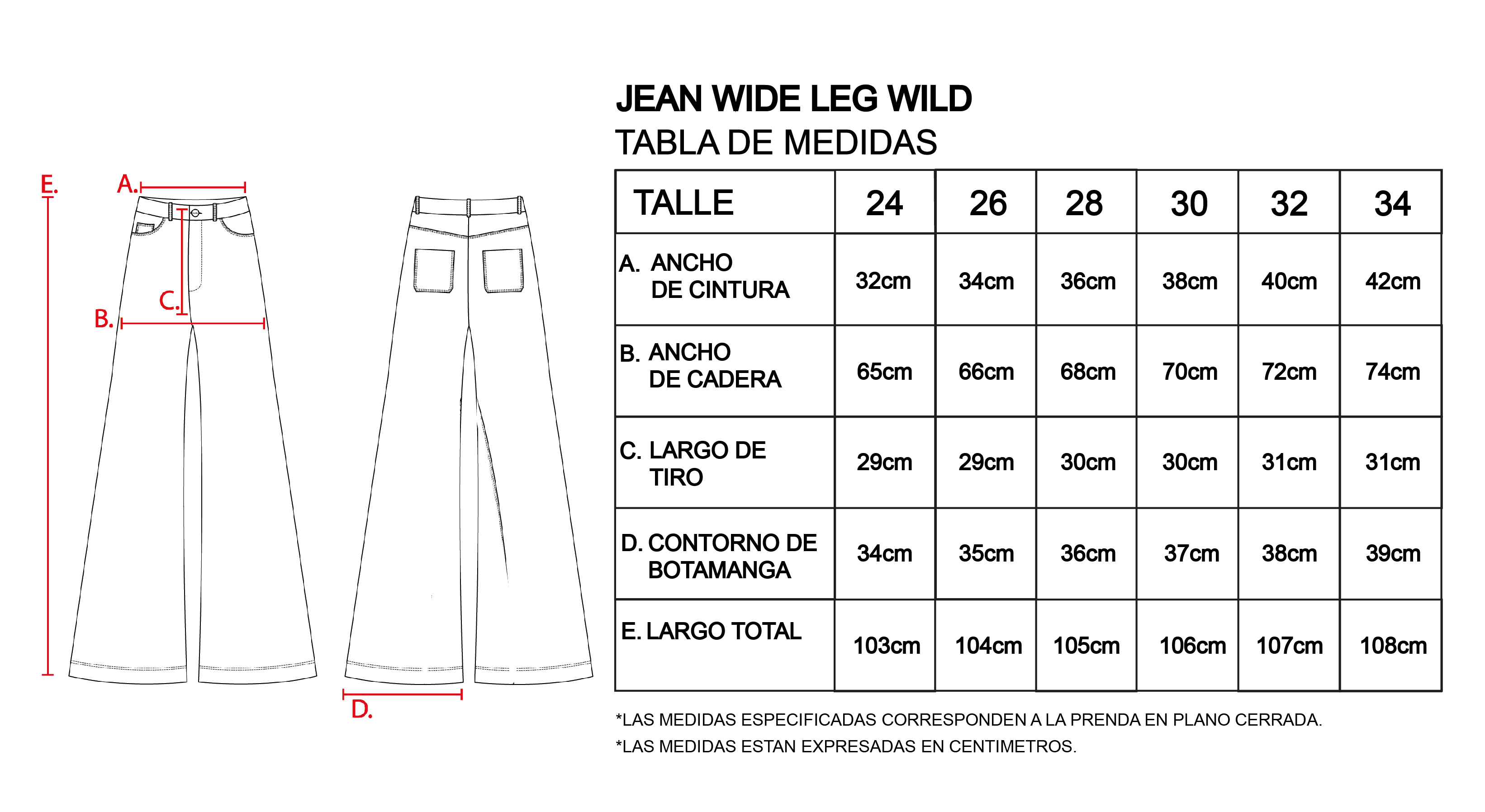 Silueta: Wide leg. De calce relajado.