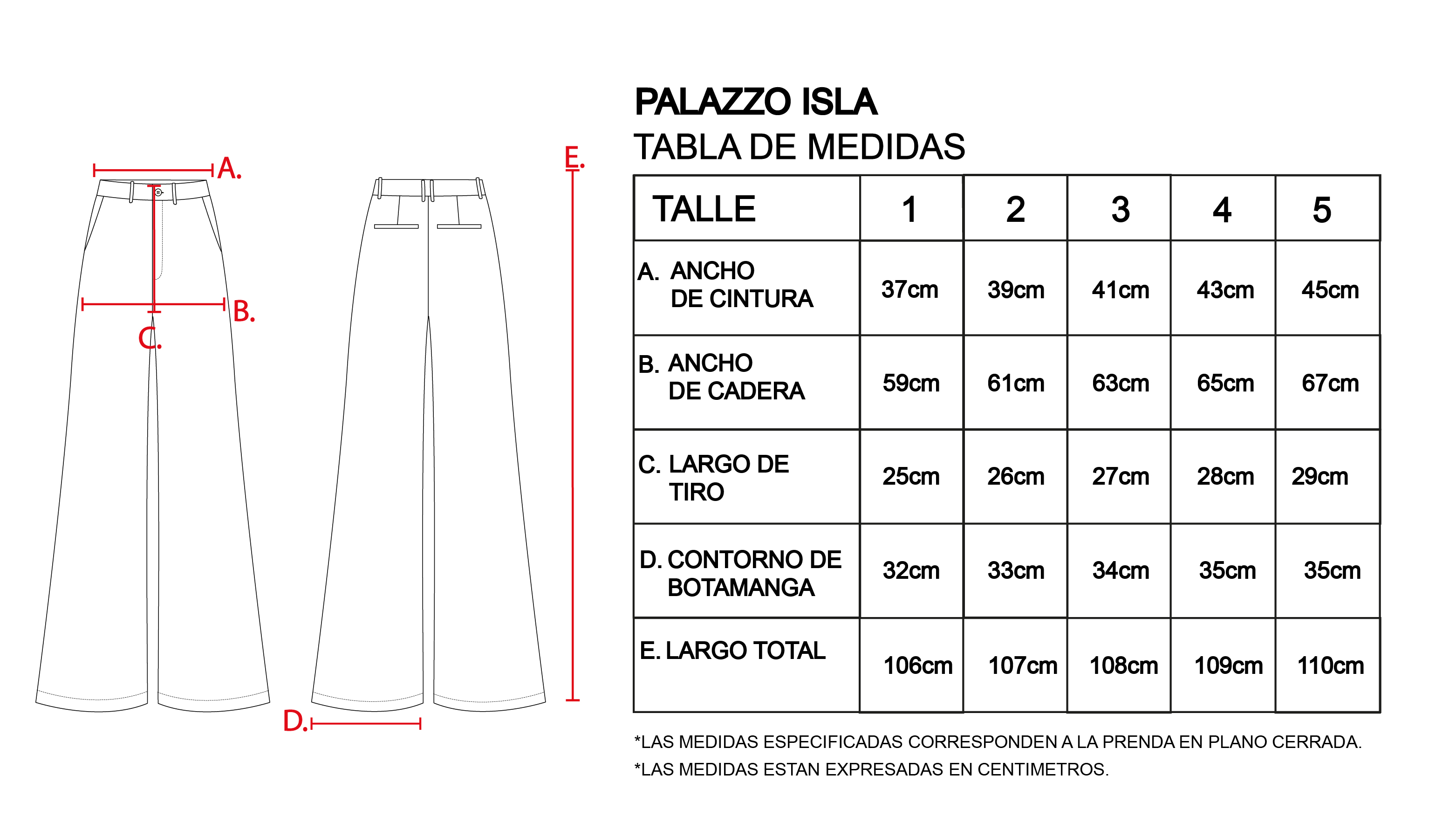 Pantalón tiro alto con pinzas de entalle. Tiene bolsillos ocultos en costura lateral y su acceso es mediante una cartera con cierre delantero y pretina abotonada, con botón a tono personalizado. La pretina tiene pasacintos, con una tirilla desmontable para atar, y la parte trasera posee elástico. El largo modular de la prenda se extiende el talón aproximadamente.