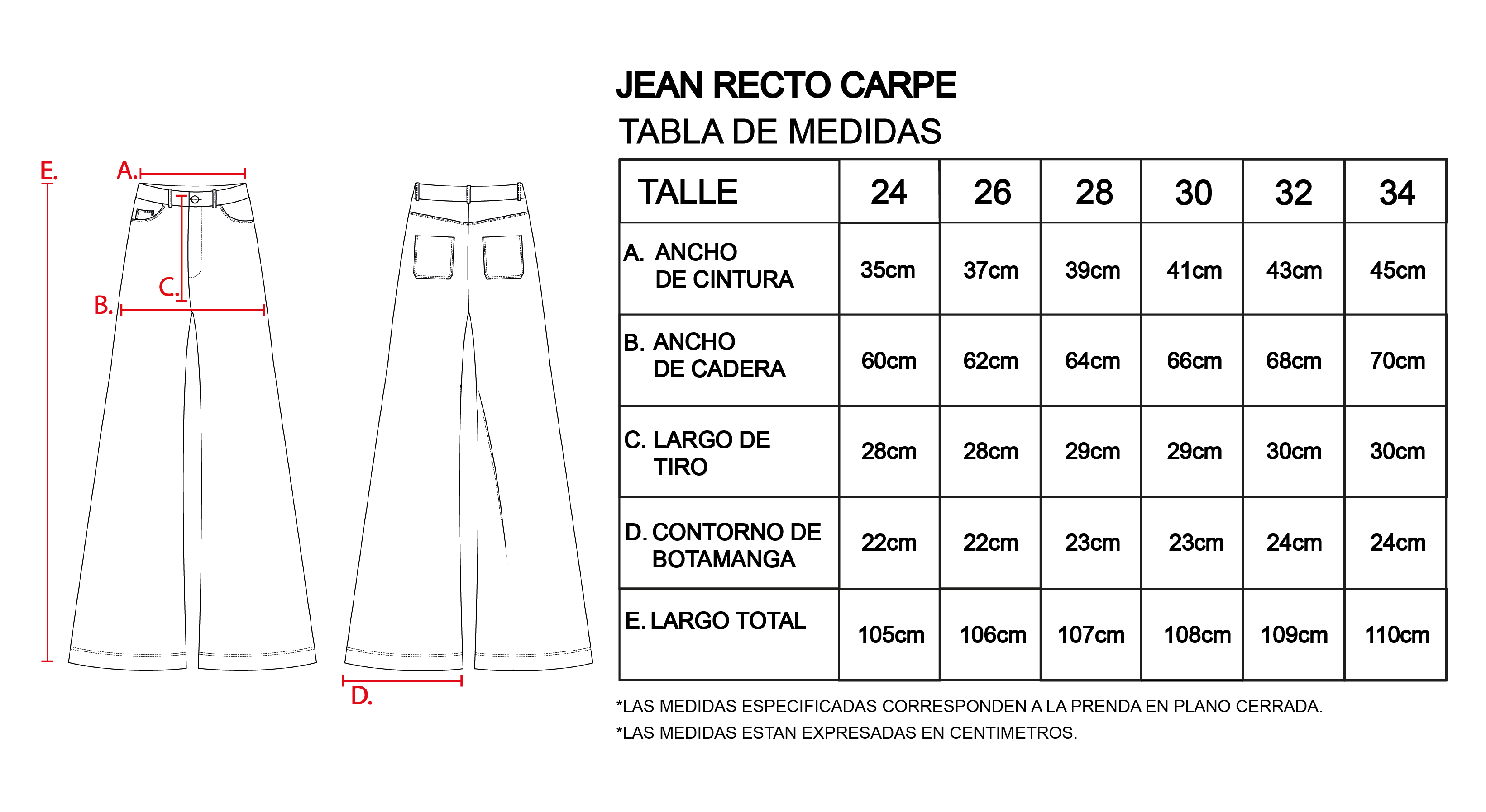 Jean recto, tiro medio y largo. En la espalda lleva bolsillos plaqué. El largo modular de la prenda se extiende hasta el tobillo, con maxi ruedo plegado. Posee badana de PU, remaches y botón personalizados de zamak.