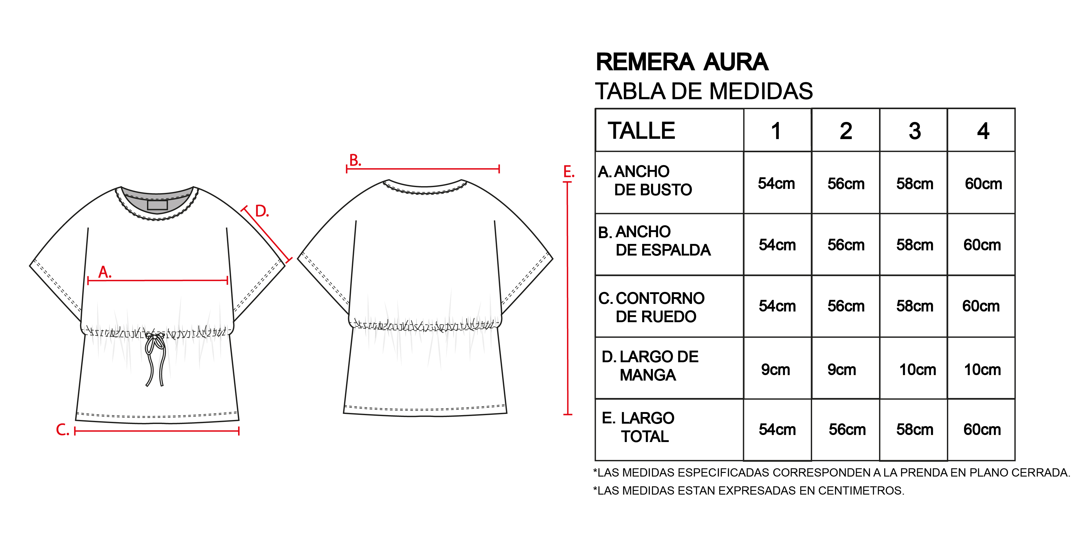 Remera escote a la base, mangas cortas sin sisa, tipo japonesa. De corte recto con jareta ajustable con tancas metálicas en la cintura, para regular la silueta. El largo modular de la prenda se extiende por debajo de la primera cadera.