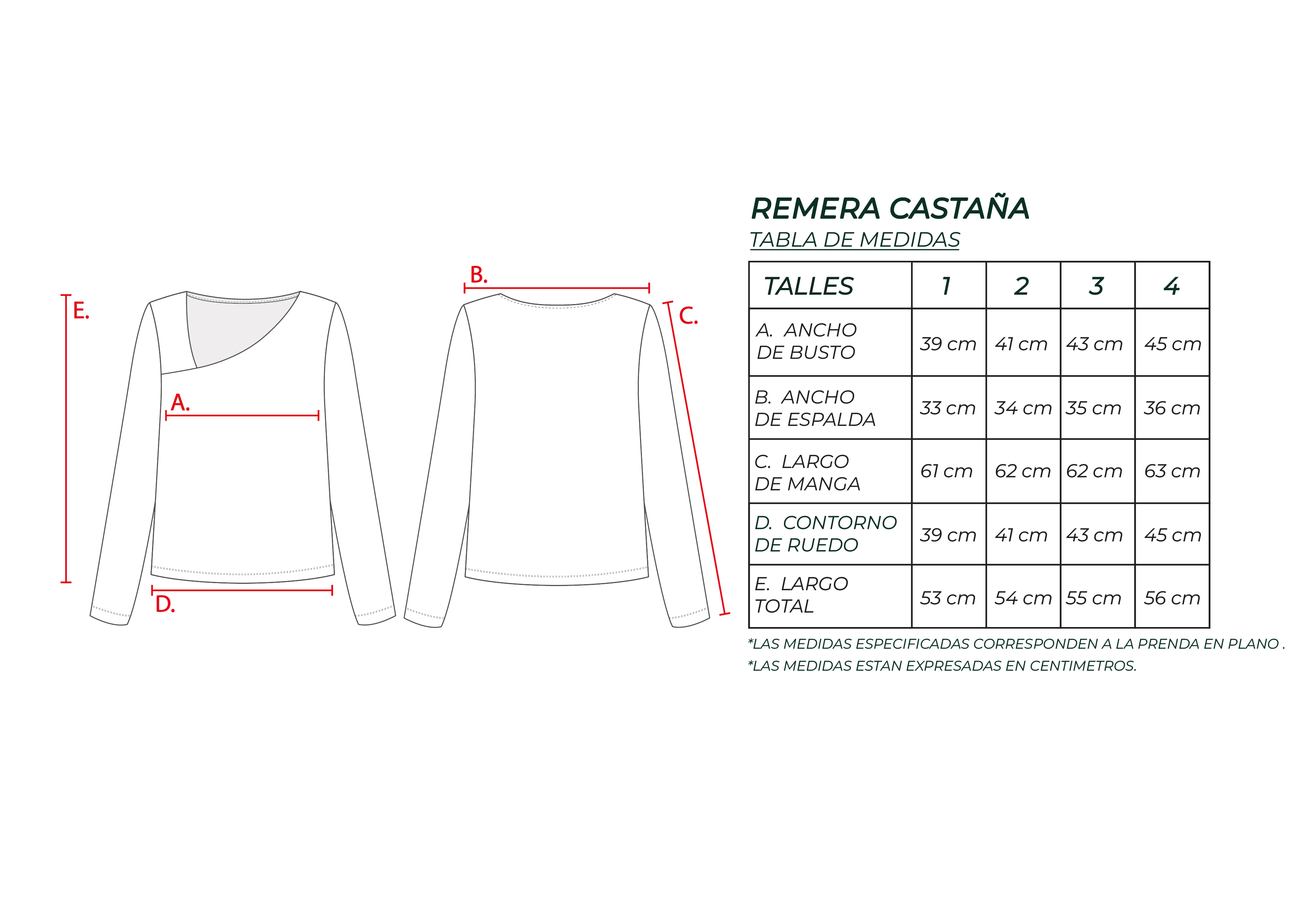 Remera con escote irregular, mangas largas. El largo modular de la prenda se extiende hasta la primera cadera.