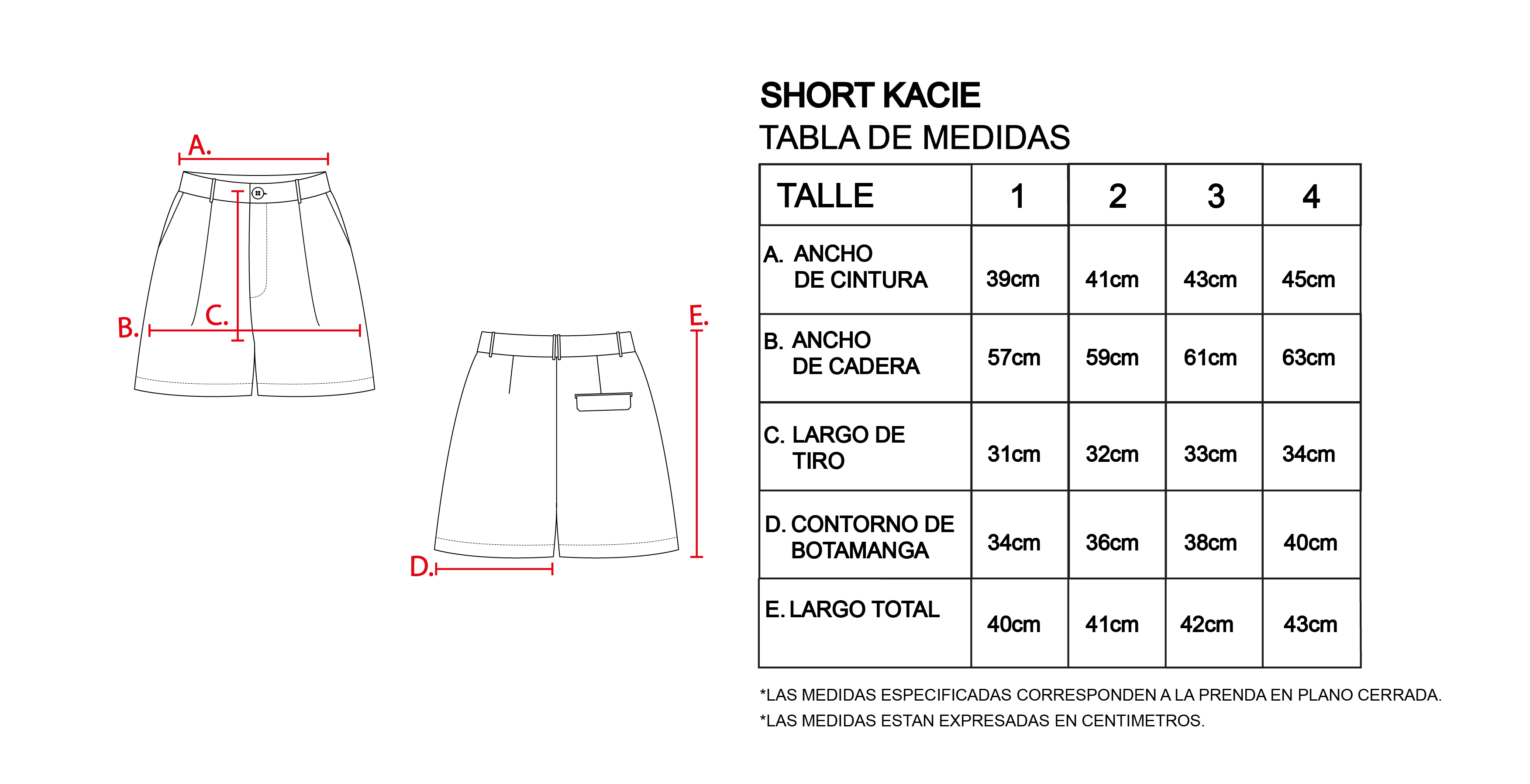 Short tiro medio con recortes verticales en las botamangas. El acceso es mediante un cierre y pretina con botón jeanero.