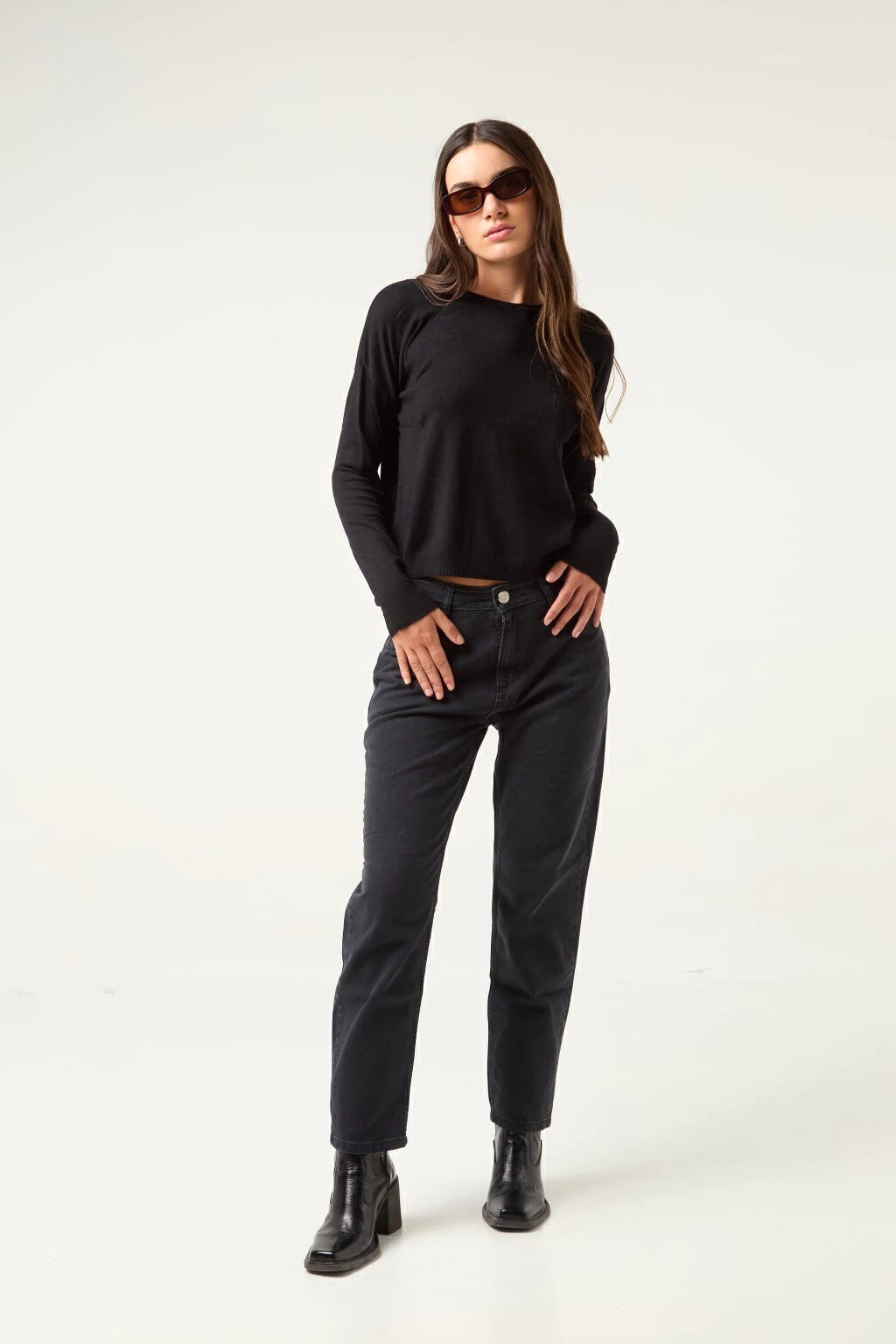 Sweater fit entallado básico, con escote a la base. Mangas largas. El largo modular de la prenda se extiende hasta la primera cadera.