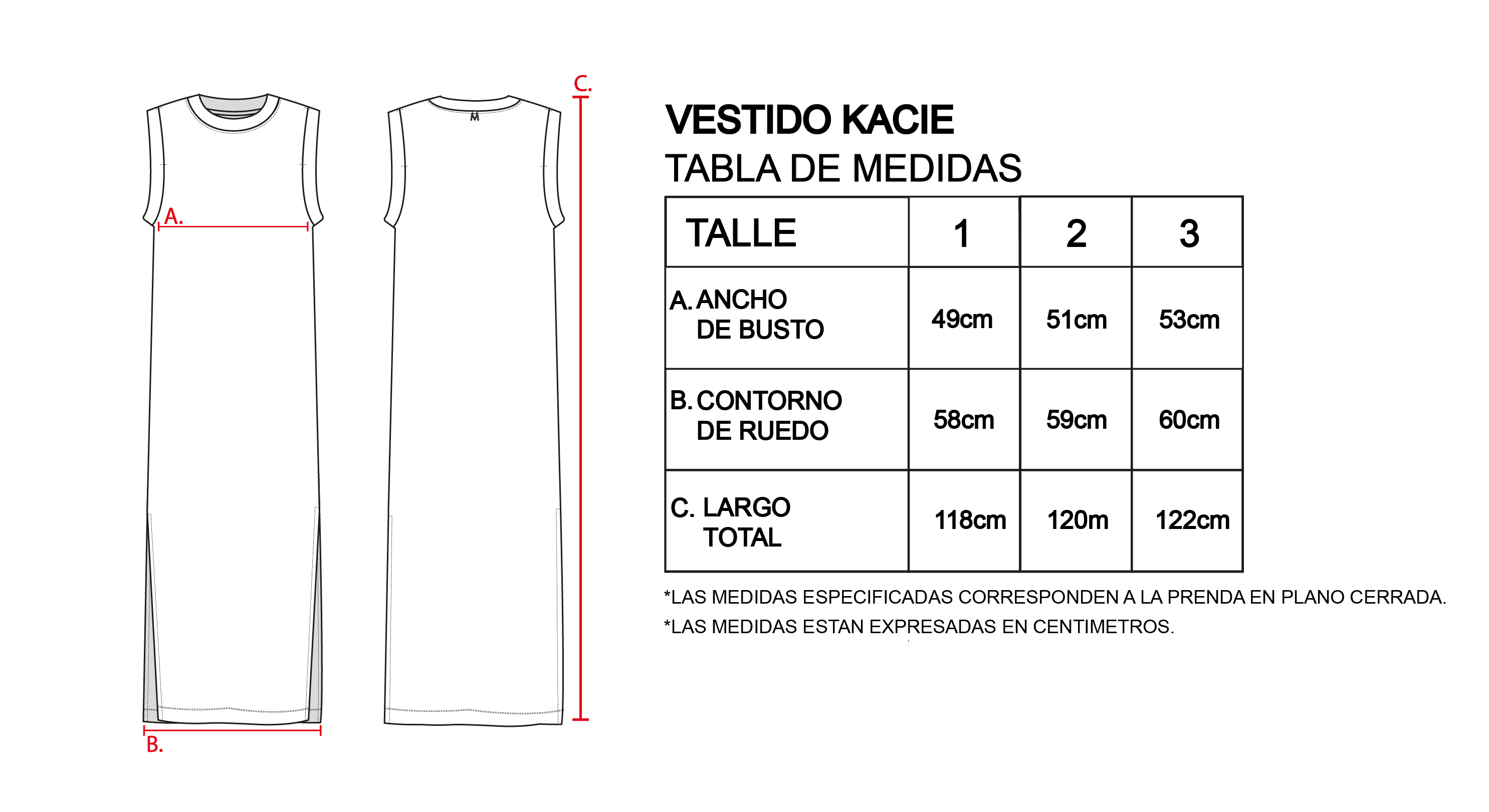 Vestido escote en redondeado a la base, sin mangas con solapa plegada en hombros. Amplio y con soltura, la falda posee tajos laterales. El largo modular de la prenda es a la altura de la pantorrilla aproximadamente.